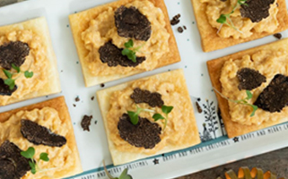Rellenamos una manga pastelera con esta pasta y vamos rellenando con paté cada piso de nuestro hojaldre. Espolvoreamos la última capa con nuestra trufa finamente picada, rallada o fileteada, y servimos.