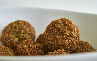 Formamos bolitas con el paté de pato al Armagnac Montes Universales. Las rebozamos en harina, las pasamos por el huevo batido y las rebozamos con panko (este pan rallado más grueso). Podemos repetir los dos últimos pasos para que tengan más consistencia.