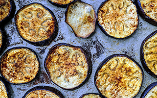 Cortamos las berenjenas en rodajas y las pintamos con aceite y las especias que hayamos escogido. Las horneamos unos 25 minutos a 200ºC. Calentamos el corzo estofado a fuego lento Montes Universales al baño María o al microondas y lo servimos con las berenjenas al lado.