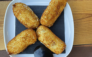 Desmoldamos los patés de ciervo Montes Universales y les damos forma de croqueta con una cuchara. Los dejamos 10 minutos en la nevera.