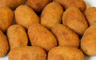 Dejamos enfriar y formamos las croquetas. Las pasamos por harina, huevo batido y pan rallado. Las freímos en aceite de oliva y dejamos que escurran el aceite en un papel de cocina.