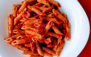 ¿Aburrido de comer siempre pasta con salsa de tomate? Simplemente añadiendo unos trocitos de chorizo cular de ciervo Montes Universales, puedes darle un toque diferente y preparar un plato delicioso y original.
