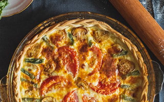 Preparamos la pasta brisa en un molde y bolcamos la mezcla. Añadimos unos trozos de tomate por encima y lo horneamos 30 minutos a 180º.