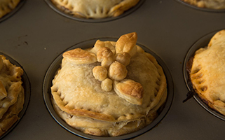 Cubrimos las tartaletas con el resto de círculos de hojaldre. Con las partes de hojaldre que nos sobran podemos aprovechar para decorar nuestras tartaletas.